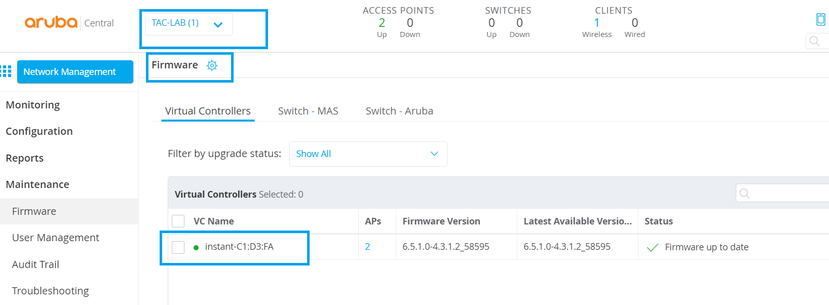 When Do We Get Firmware Upgrade Failed Error In Aruba Central Even Though Iaps Are In Latest Code